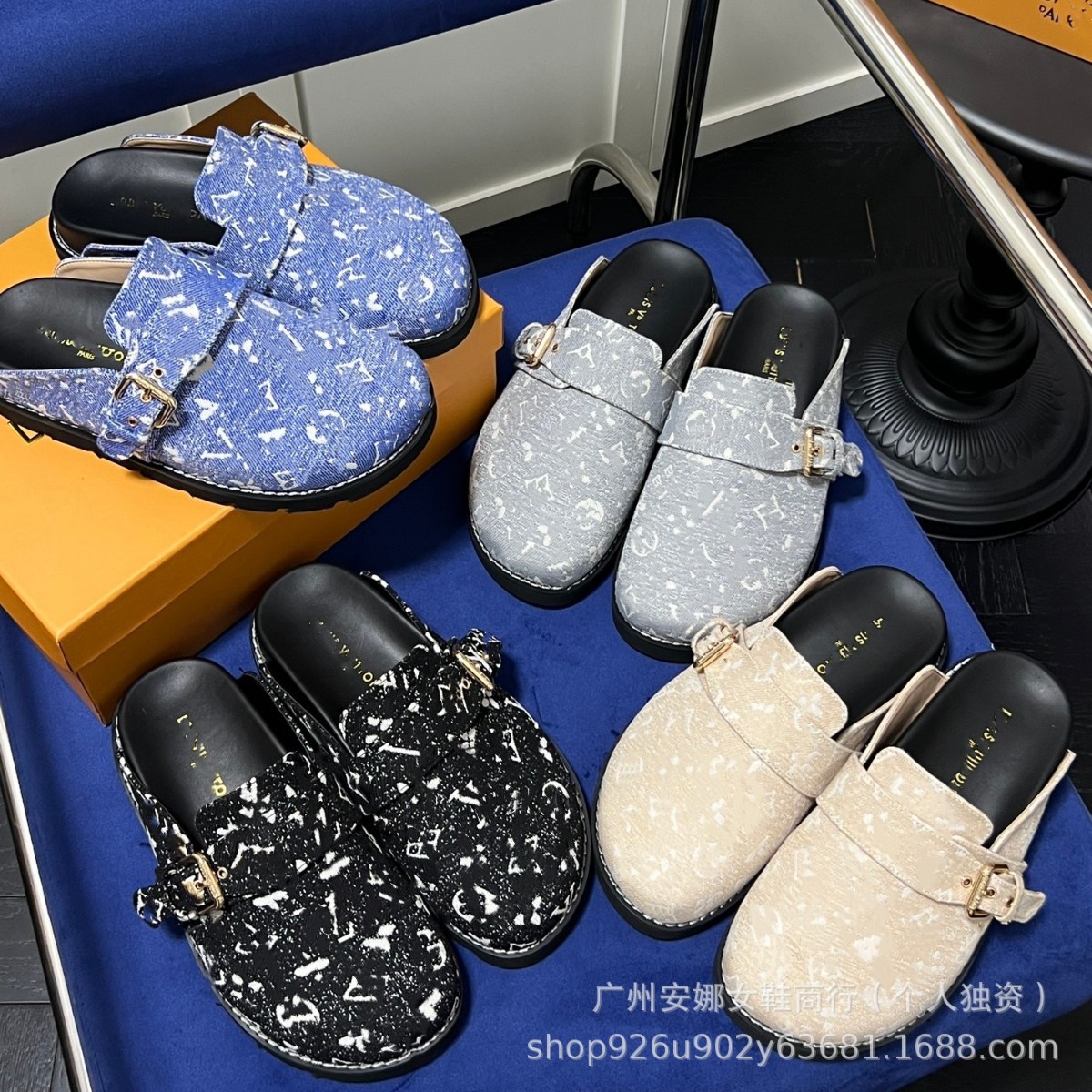厂家现货供应外贸情侣款驴家拖鞋经典老花字母平底一脚蹬包头拖鞋