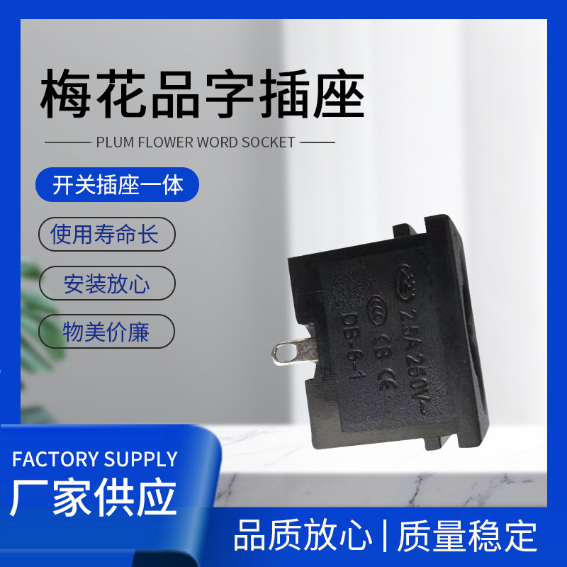 梅花品字插座 三孔品字开关插座一体 2.5A250V插座 支持来样制作
