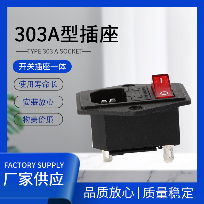 供应AC三合一系列带灯开关控制 303A 配送保险管各类仪器电源插座