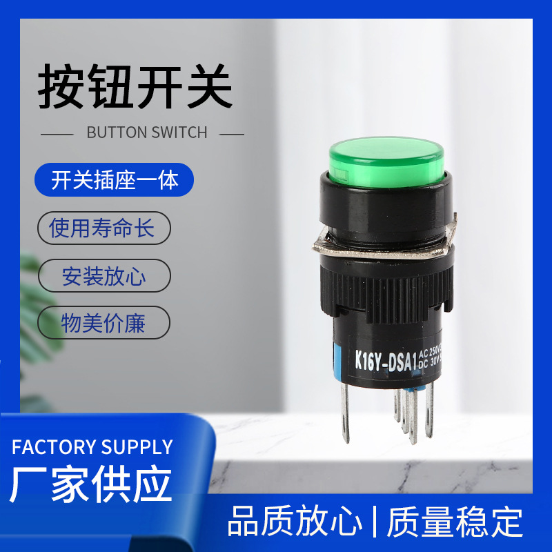 K16Y按钮开关带灯自复位自锁正方形长方形圆形启动电源12 24 220V
