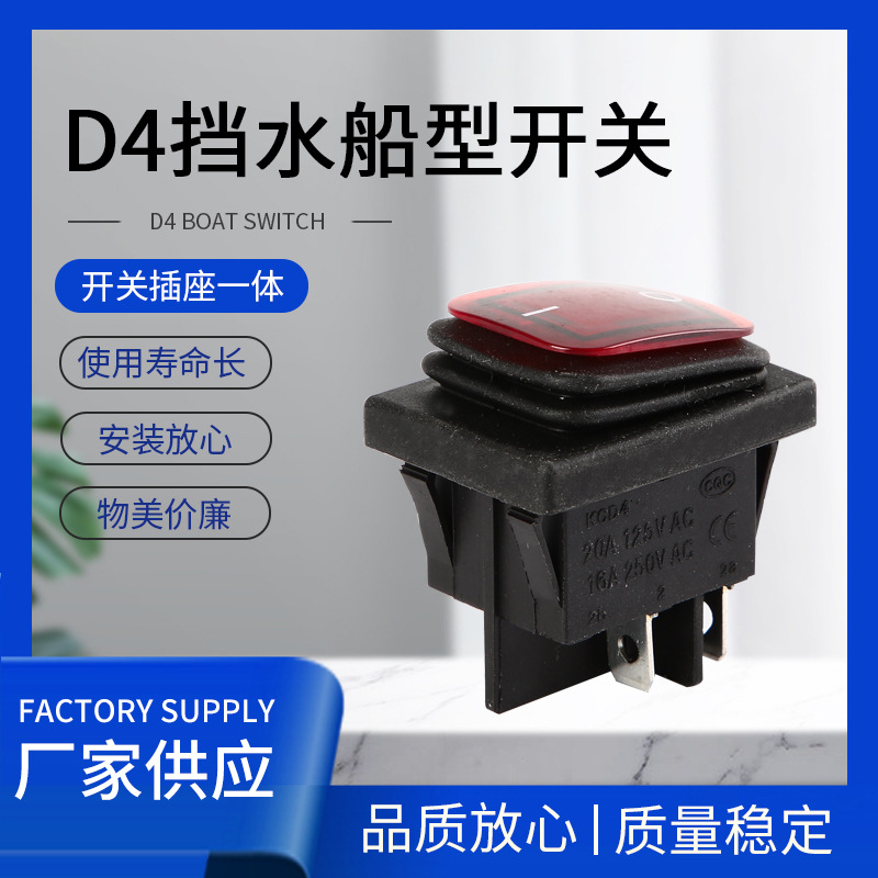 四脚两档船型开关 带挡水帽翘板开关 16A20A汽车电源开关