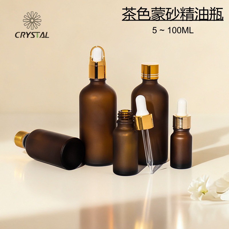 现货茶色蒙砂精油瓶避光胶头滴管玻璃瓶化妆品精华液便携式分装瓶
