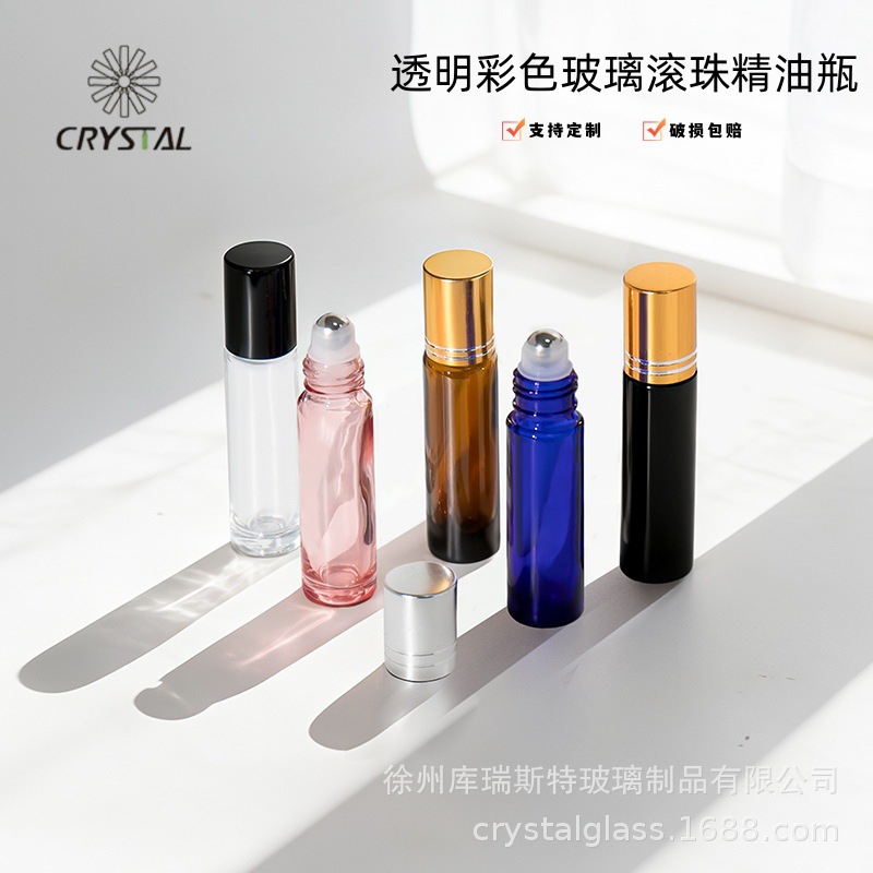 10ml透明彩色玻璃滚珠精油瓶香水走珠瓶便携式高端精华小样分装瓶