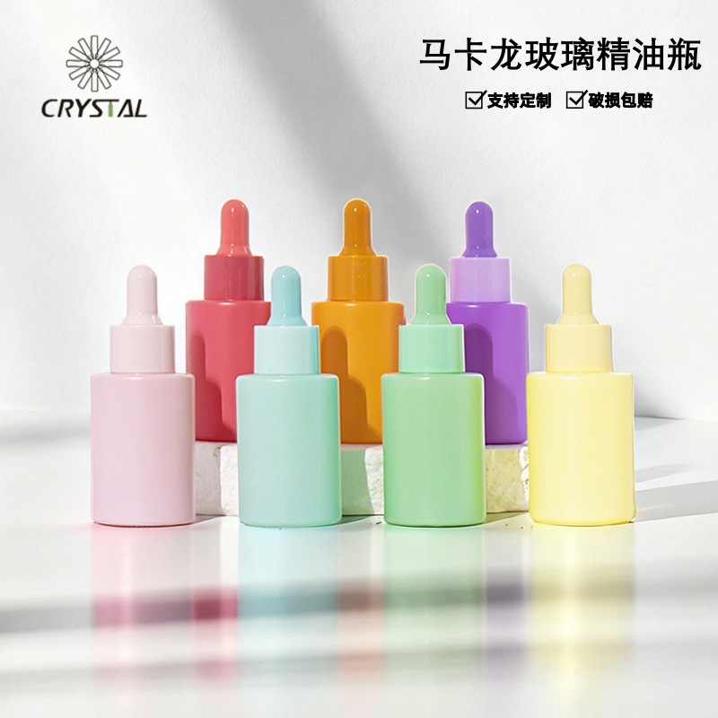 马卡龙精油瓶平肩30ml高端精华液滴管瓶彩色玻璃化妆品分装瓶现货