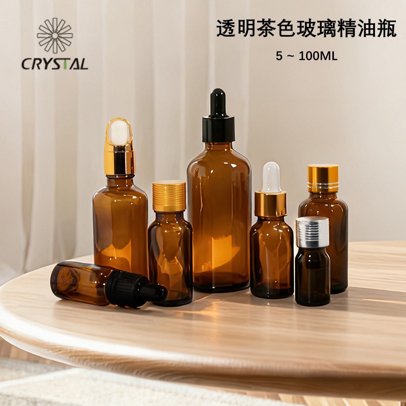 茶色精油瓶5ml-100ml胶头滴管瓶化妆品精华液分装瓶便携式小样瓶