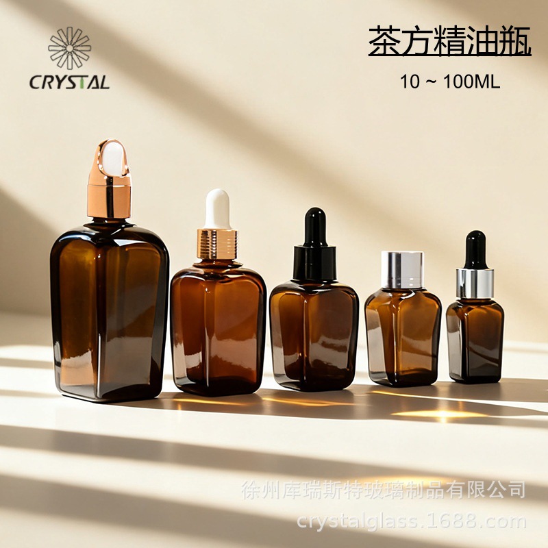 茶色方形精油瓶避光胶头滴管瓶化妆品精华液分装瓶便携式小样空瓶