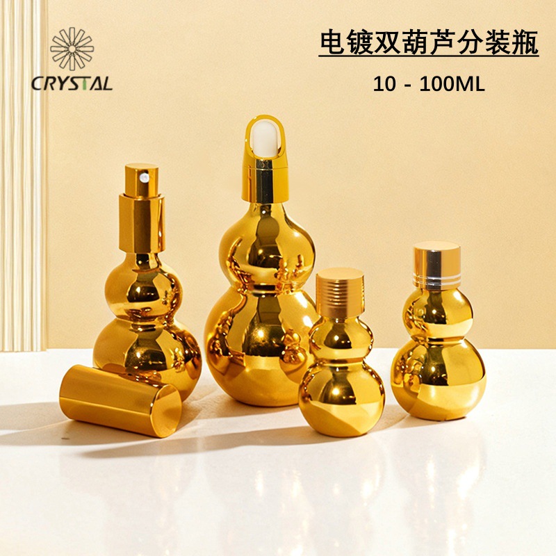高档电镀金色双葫芦精油瓶便携胶头滴管式化妆品乳液瓶精华液小样