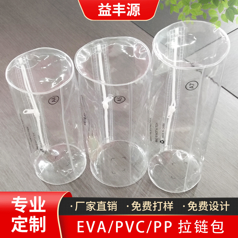 亚马逊eva圆筒拉链袋警告语服装软胶袋塑料袋透明现货圆柱包装袋