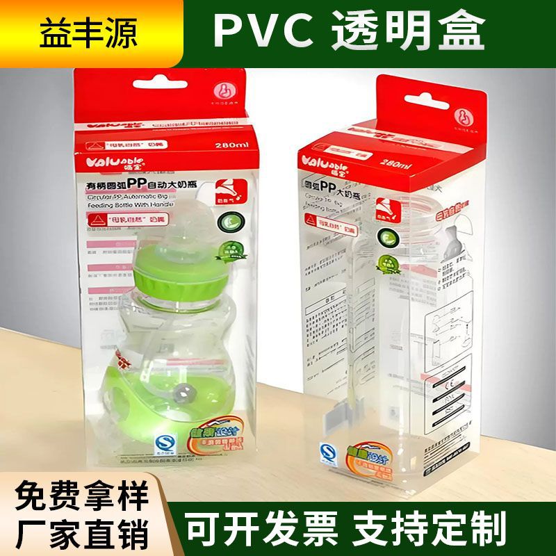 工厂跨境pet印刷包装盒长方形 pvc胶盒奶瓶透明折透明盒挂钩批发