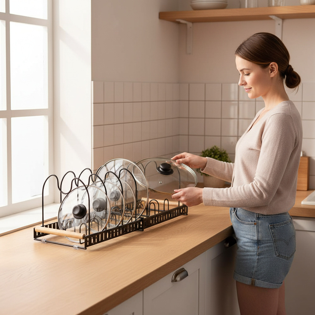 多功能收纳伸缩锅盖架厨房碗碟架防锈材质伸缩架厨房免打孔置物架