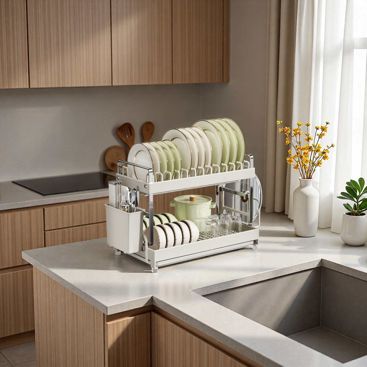 碗碟沥水架厨房沥水置物架可拆卸清洗双层碗架带筷子筒不锈钢