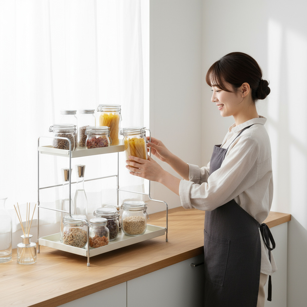 折叠便携双层置物架多功能用途储物架厨房客厅架浴室办公室置物架