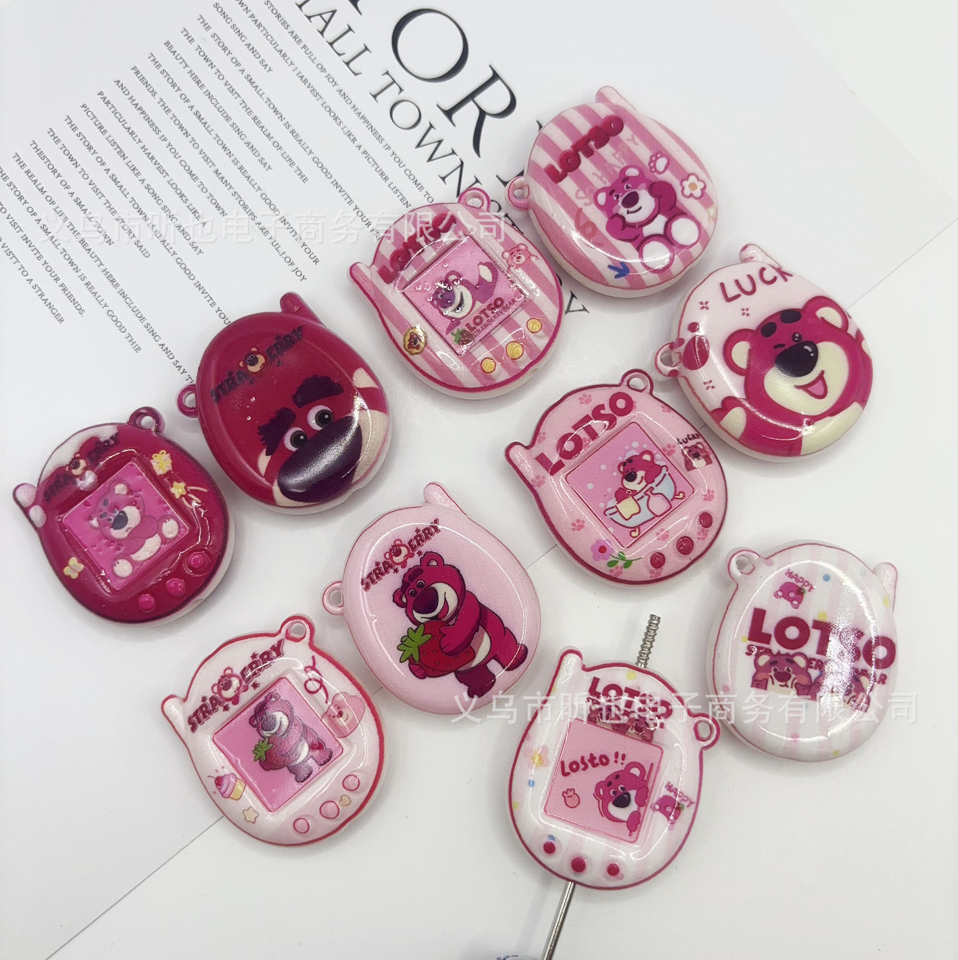 通孔拓麻歌子草莓熊双面印花串珠笔配件手机链DIY饰品DIY材料