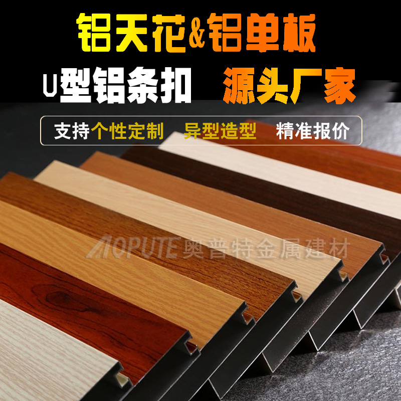 木纹U型铝方通 工装铝合金条形铝扣板 天花吊顶装饰材料