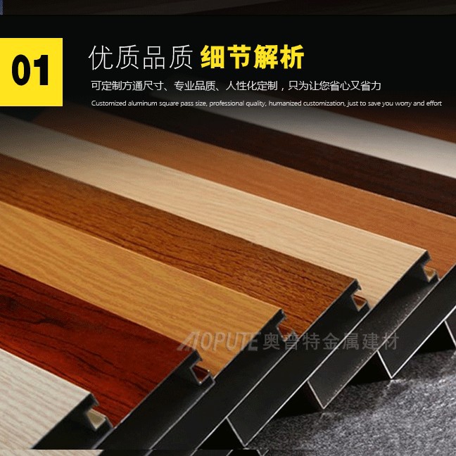 木纹型材铝方通工装办公室吊顶材料天花板方通装饰阳台格栅铝