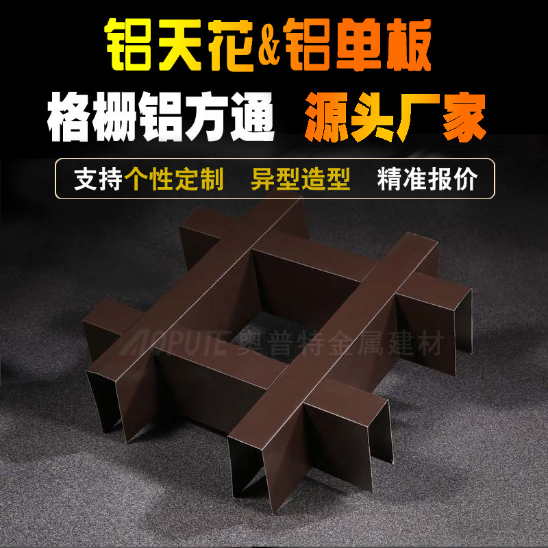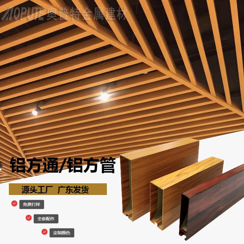 工装吊顶材料木纹铝方通办公室通道长条装饰材料吊管铝格栅天花板