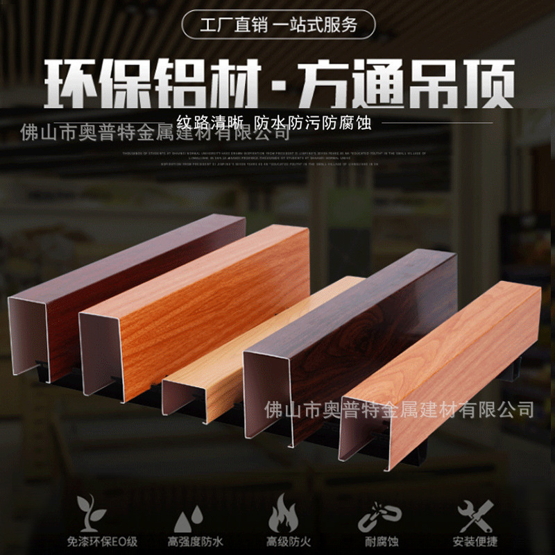 工厂直销热仿木纹转印铝方通U型槽铝天花吊顶阻燃防潮铝方通吊顶