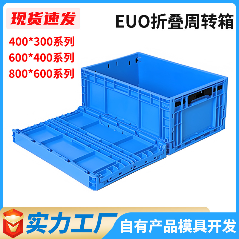 EUO折叠箱4628物流箱多功能汽配物料箱蓝胶箱塑料仓储加厚周转箱