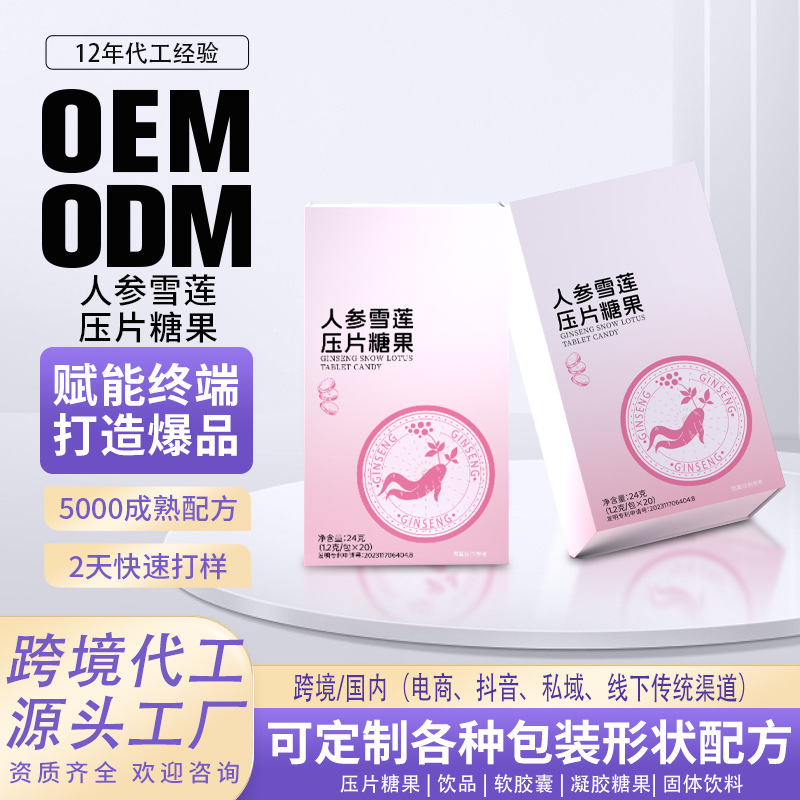 源头工厂人参雪莲压片糖果1.2g*20片瓶装白芷红枣美容养颜OEM定制