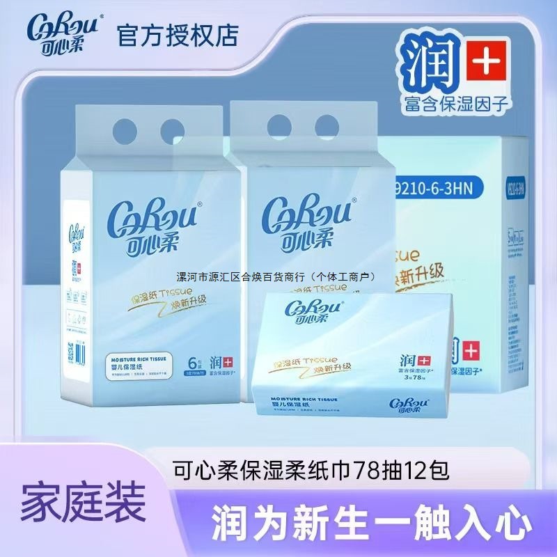 可心柔V9婴幼儿宝宝云柔巾保湿柔润纸巾乳霜纸大包便携装78抽