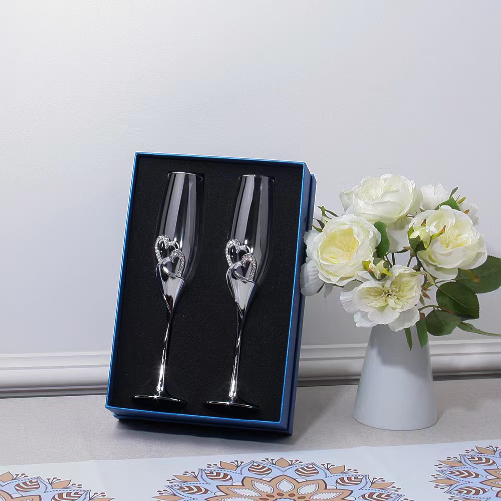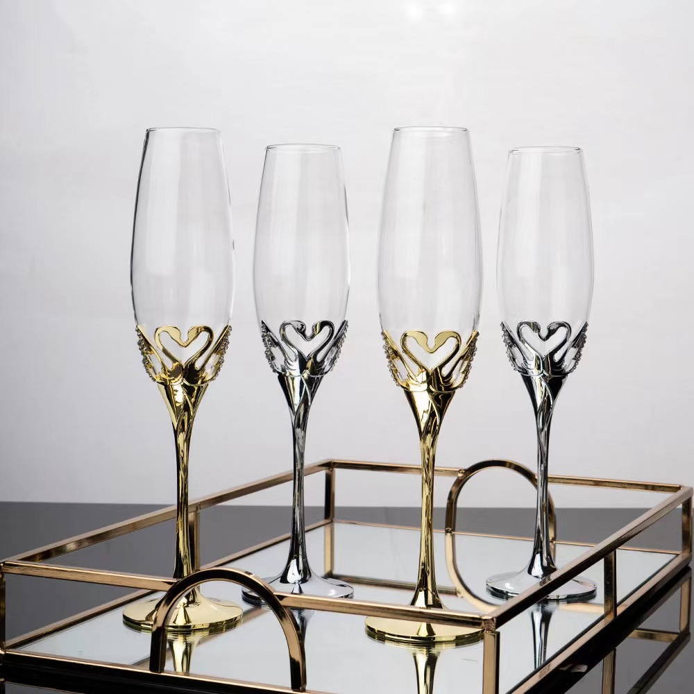 香槟杯水晶高脚杯婚庆批发礼品对杯高脚杯起泡酒杯简约心形红酒杯