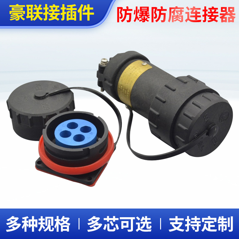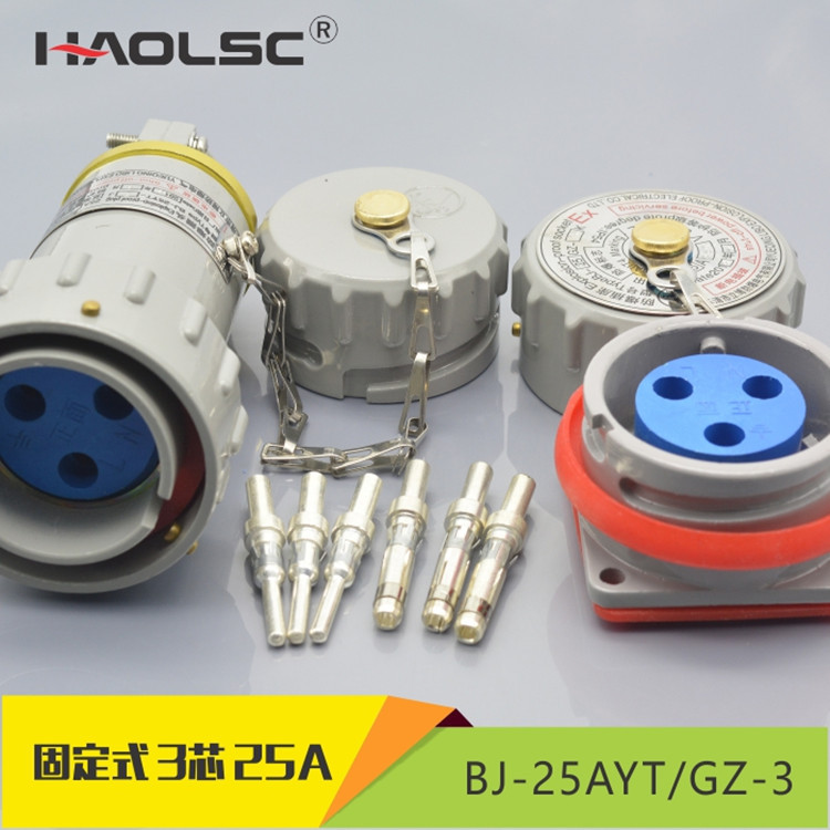 防爆防水连接器25A三相五极4芯固定式插头插座铝壳电连接安全