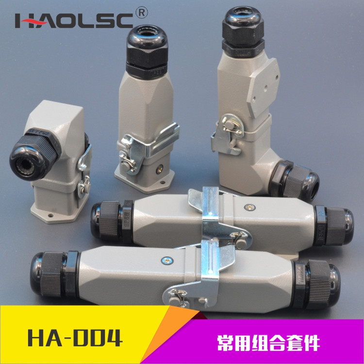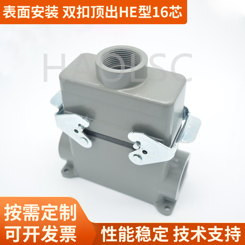 双扣顶出H型侧出带盖16芯矩形重载连接器航空工业插头插座热流道