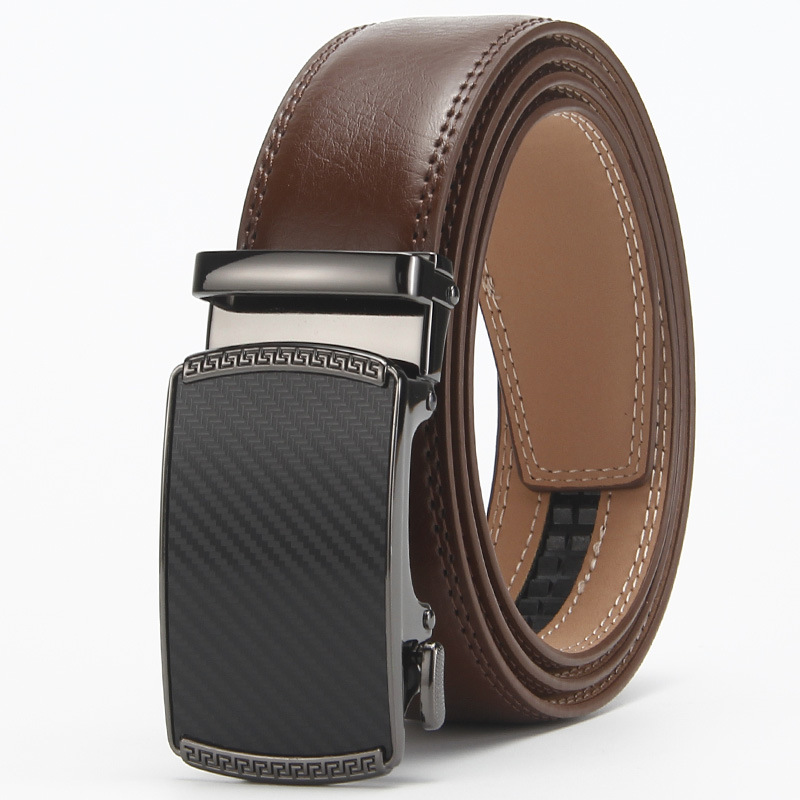新款989纹男士包边二层牛皮自动扣皮带 钟表款商务休闲男腰带