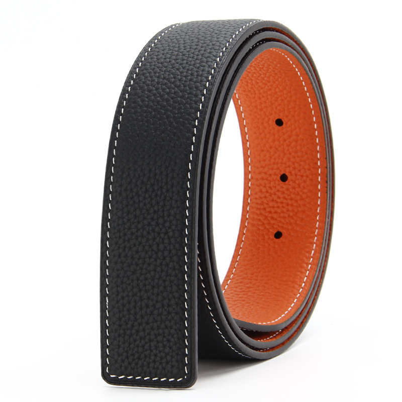 3.8双面头层皮荔枝纹皮带条男士针扣板扣皮带身牛皮车白线皮带带