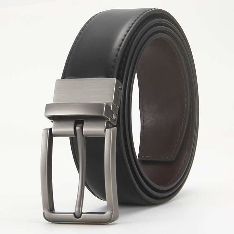 工厂现货 针扣皮带男士 双面可用真皮休闲时尚腰带旋转扣跨境
