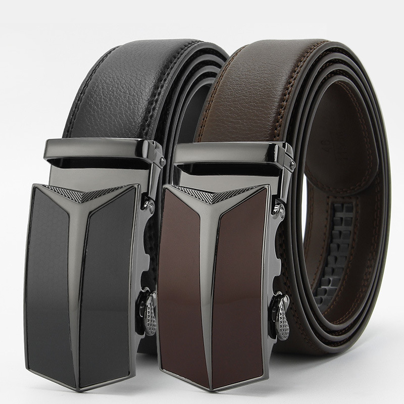 外贸胶片扣皮带3.5自动扣皮带 男士真皮商务休闲腰带批发