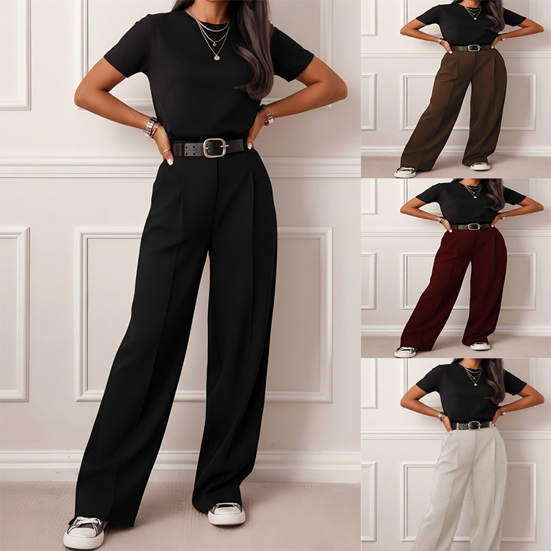 2025秋冬亚马逊欧美跨境女装新款时尚侧荷包百搭纯色直筒阔腿卫裤