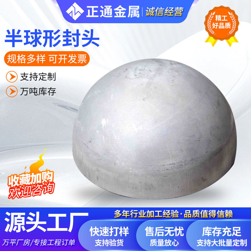 304不锈钢半球形封头加工平底半球形大口径管帽冲压球形封头定制