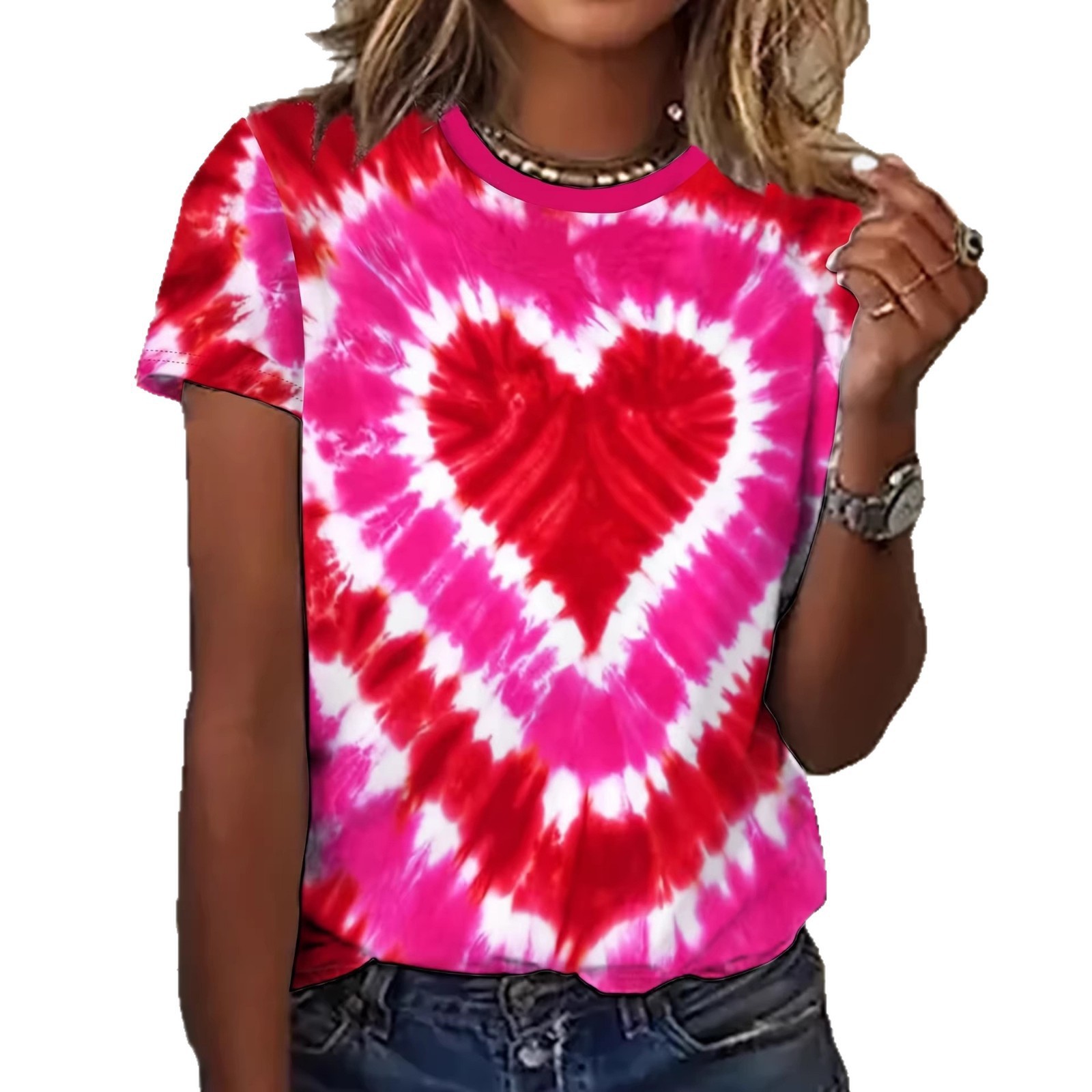 时尚跨境爆款爱心印花短袖宽松T恤女士夏季休闲百搭款上衣