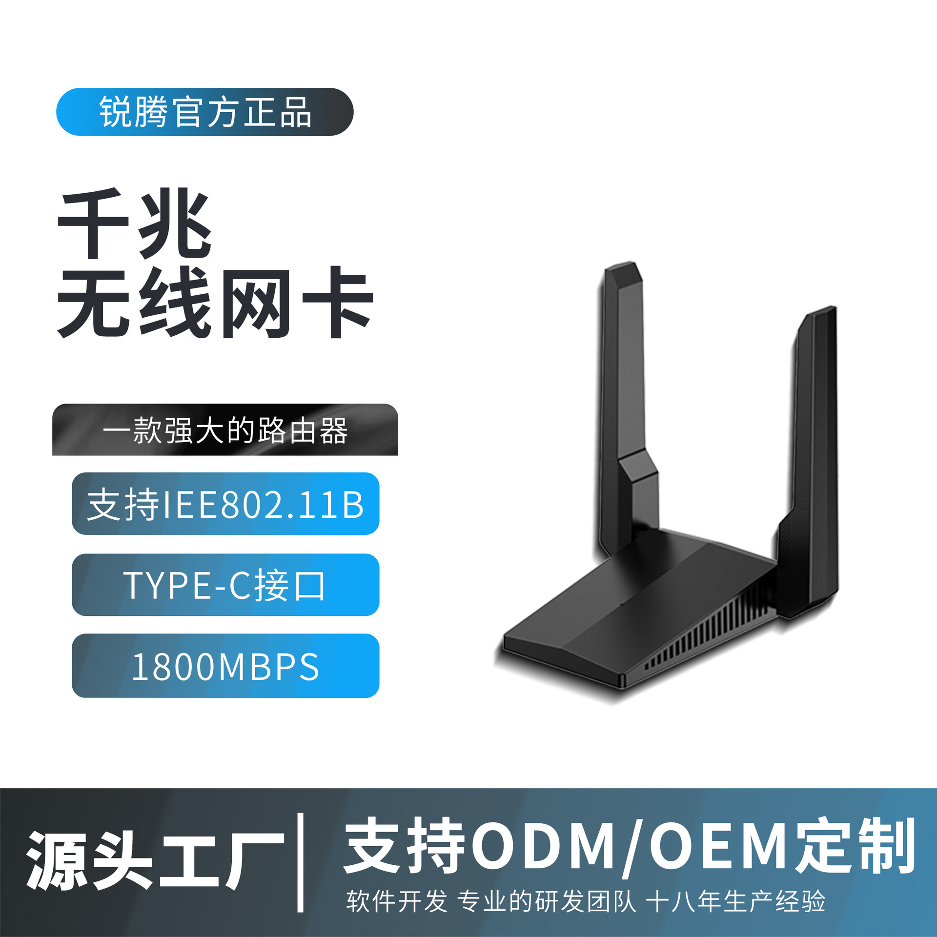 定制1800Mbps无线网卡千兆双频台式机usb接口电脑wifi跨境专供