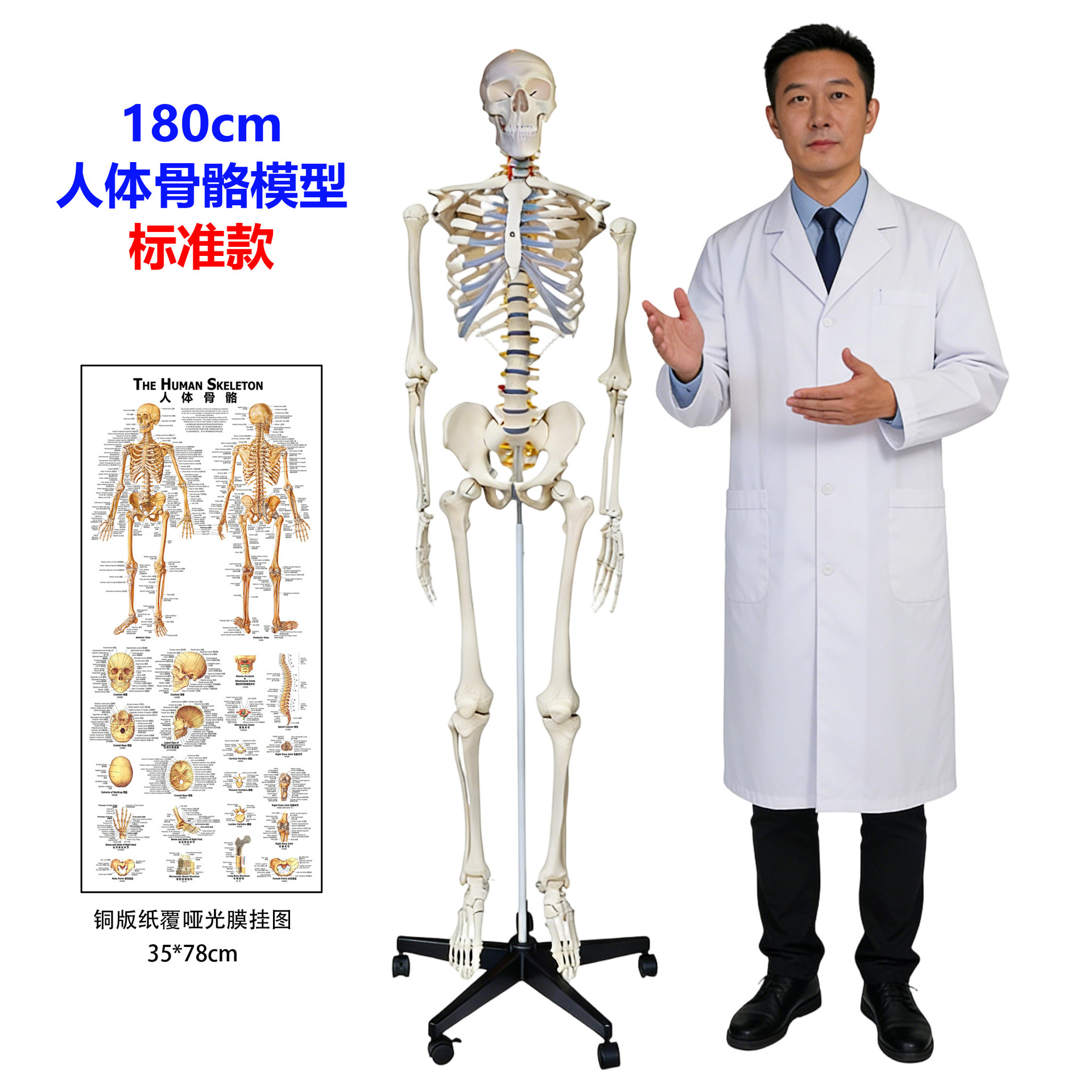 180cm人体骨骼模型标准骨架中英文挂图医学教学解剖演示展示高仿