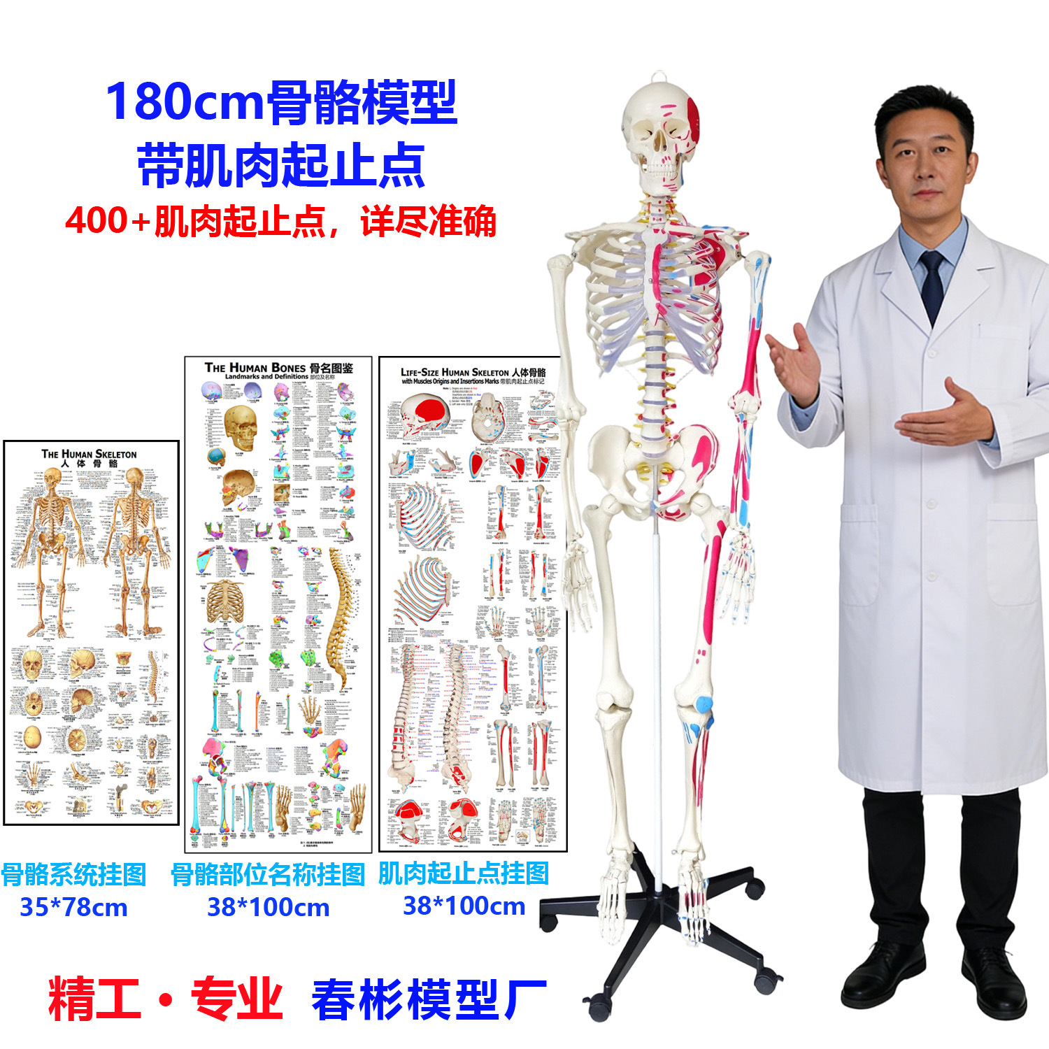 180cm人体骨骼模型骨架肌肉起止点解剖学挂图医学教学立体专用