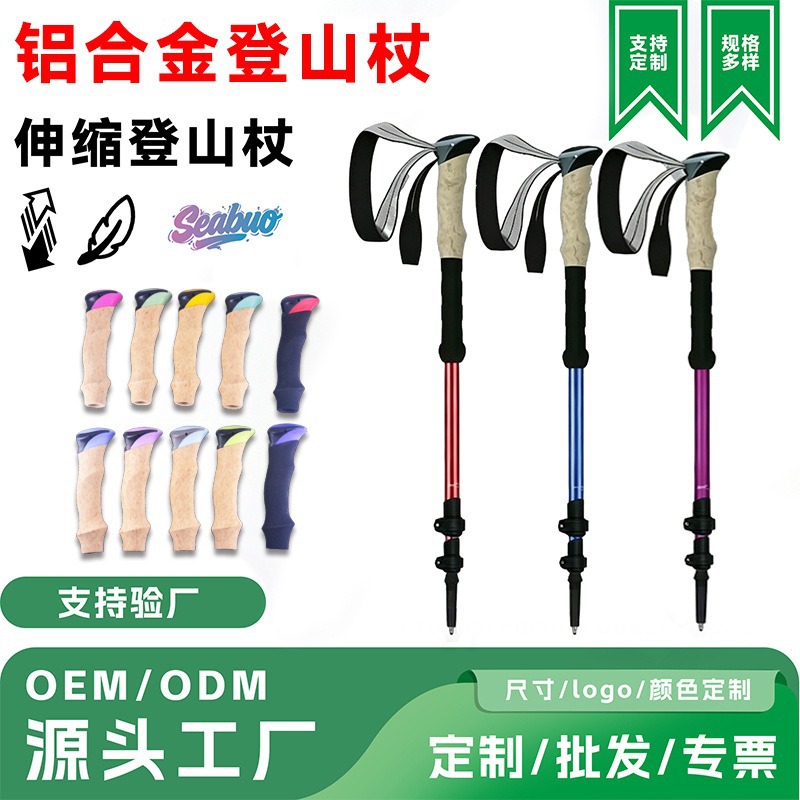 工厂铝合金登山杖手杖三节伸缩户外徒步爬山专业拐多功能登山杖
