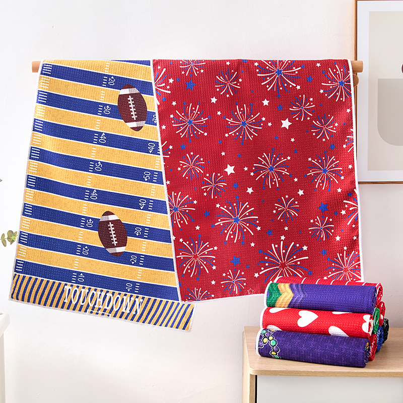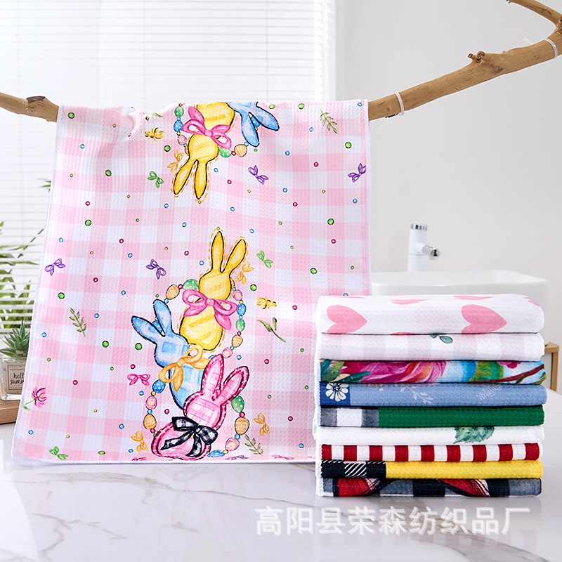 跨境华夫格菠萝格印花茶巾40*60cm圣诞节万圣节厨房柔软吸水毛巾