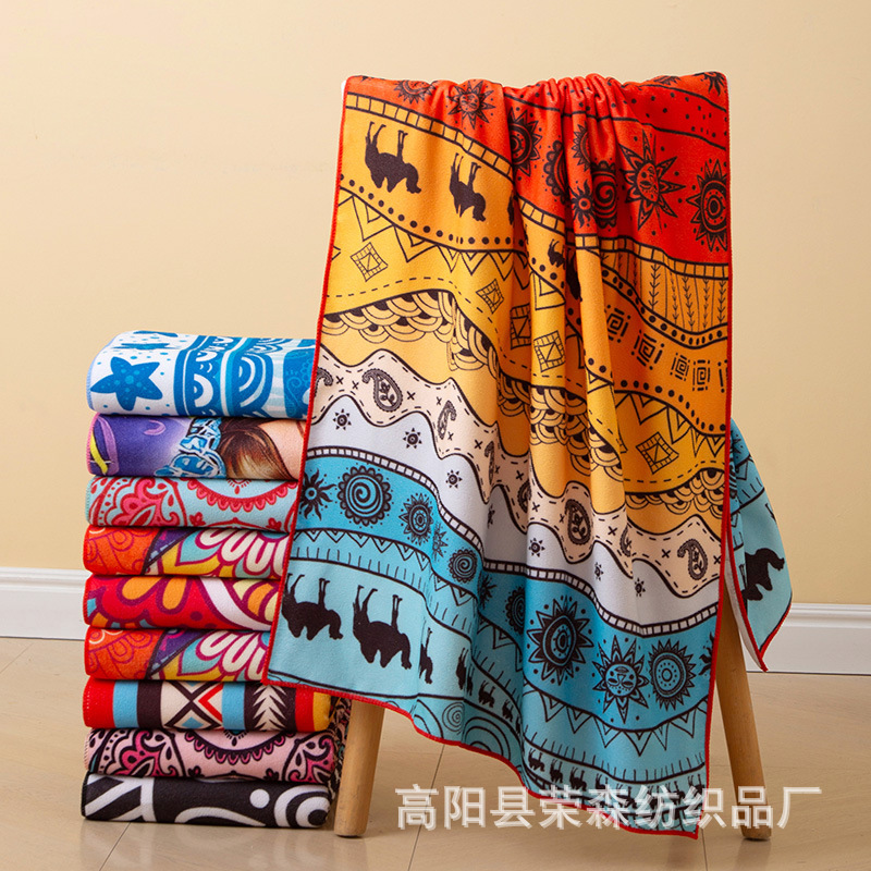 印花沙滩巾跨境亚马逊双面绒运动毛巾海边海边防晒速干浴巾厂家