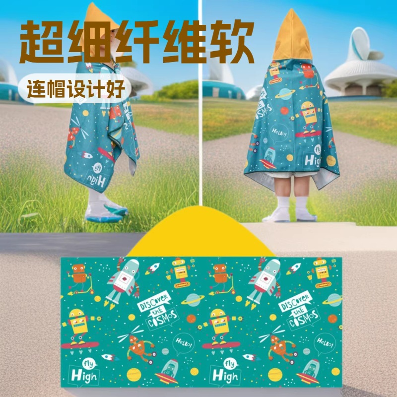 儿童连帽浴巾斗篷卡通印花吸水速干柔软亲肤游泳超细纤维可爱披风
