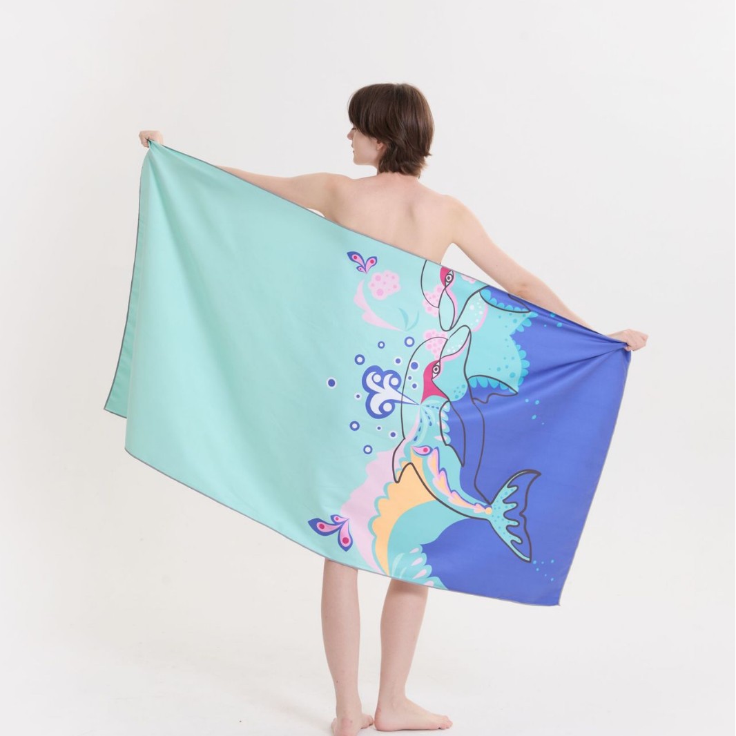 印花速干沙滩巾细纤维吸水不掉毛男女款游泳健身运动披肩浴巾定制