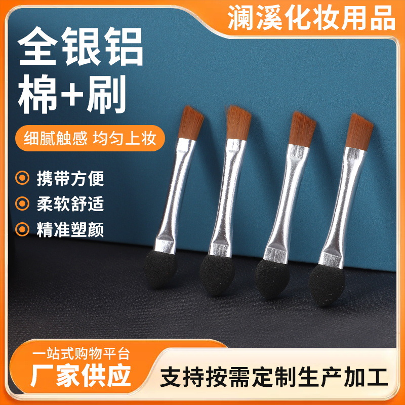 5.0cm双头化妆刷全银铝管眼影刷乳胶海绵眼影刷人造纤维毛眉刷