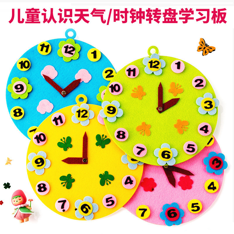 天气预报气象表盘毛毡数字钟表转盘幼儿园时钟早教教具毛毡学习盘