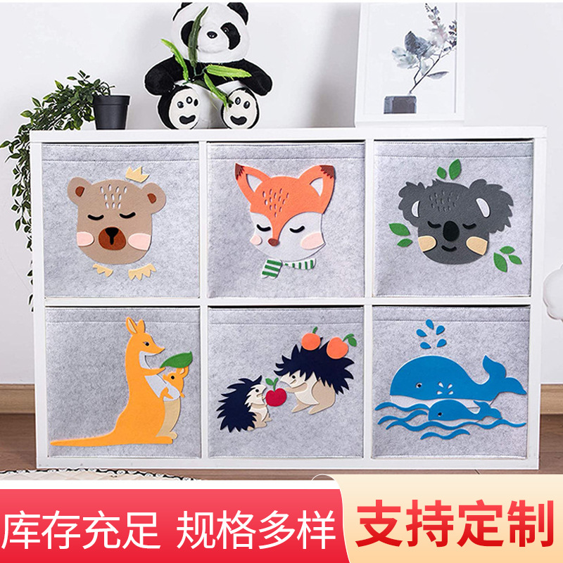 新款跨境供应毛毡收纳篮卡通动物图案玩具储物筐无纺布可折叠收纳