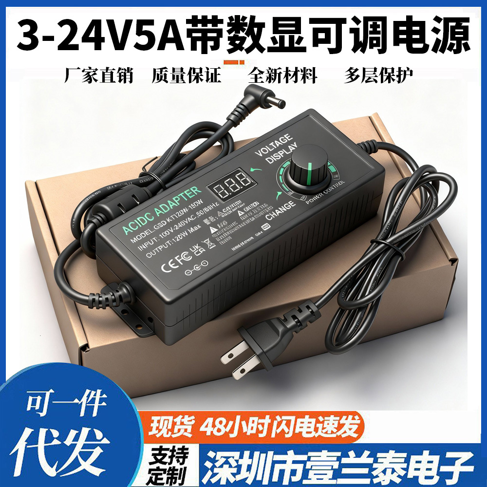 3-24V5A可调电源适配器 3-12V10A调压调速调光带数显电源适配器