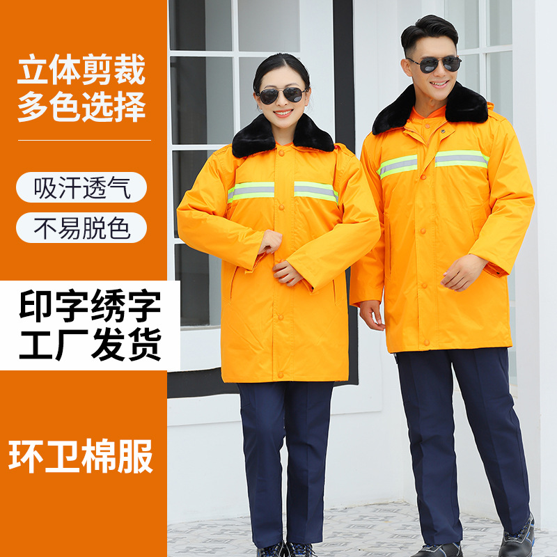 冬季环卫工作棉服带毛领内胆可拆卸外套加厚防寒保暖劳保服棉衣