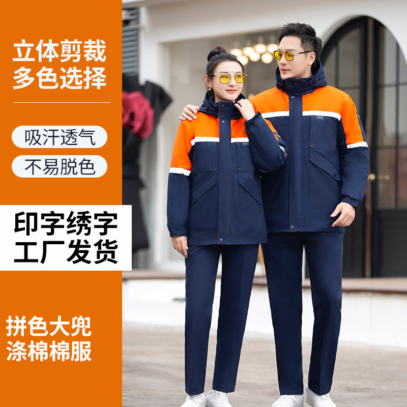 冬季工作服大兜拼色保暖劳保棉服户外仓储搬运防寒棉袄加厚棉上衣