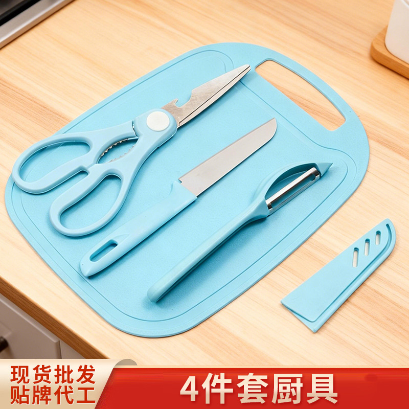厨房水果刀四件套厨具削皮刀水果刀剪刀菜板便携宝宝辅食蔬果厨具