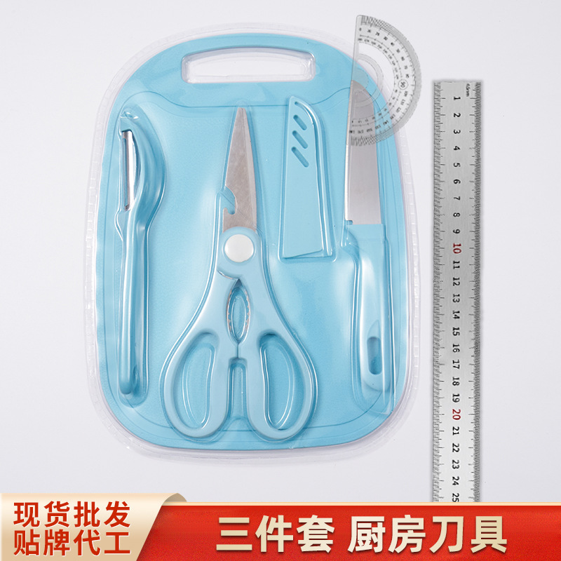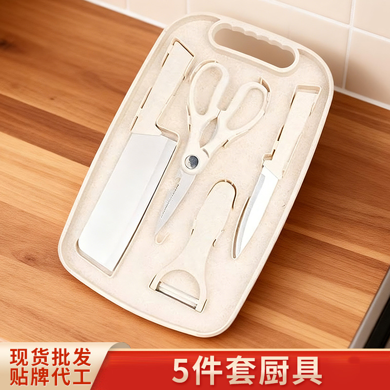 不锈钢刀具厨房厨具5件套剪刀削皮刀菜刀水果刀菜板跨境厂家批发